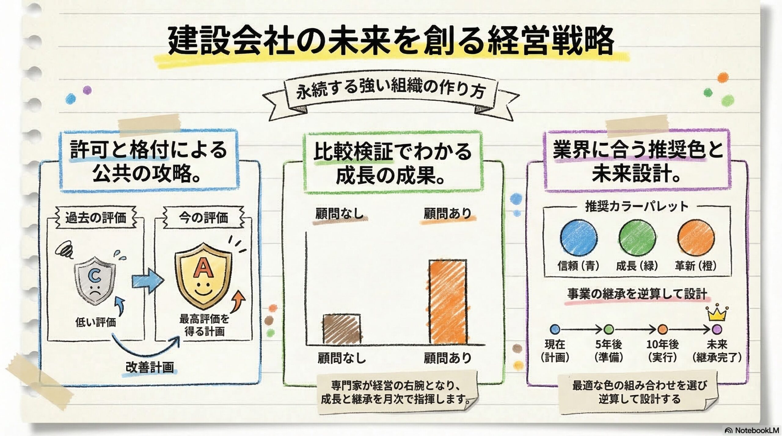 あらゆる工種、あらゆる規模の企業の成功パターンを熟知しているからこそ、御社に最適な「格付け」を設計できます。