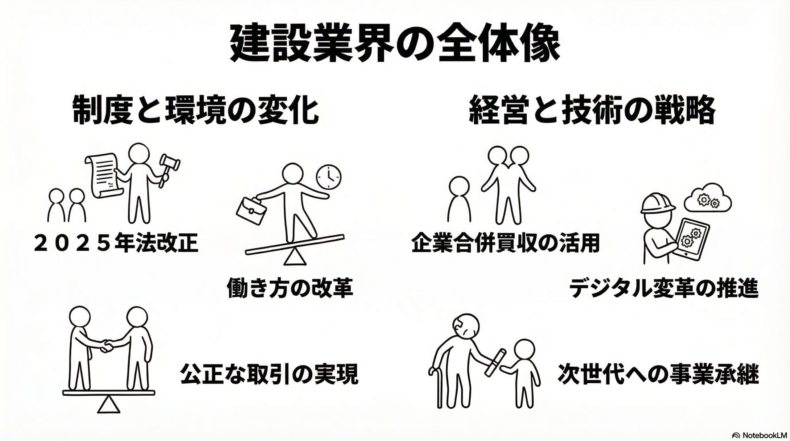 【最新動向】建設業のM&Aが急増する背景と成功の鍵〜技術・人材承継と許可維持の戦略〜