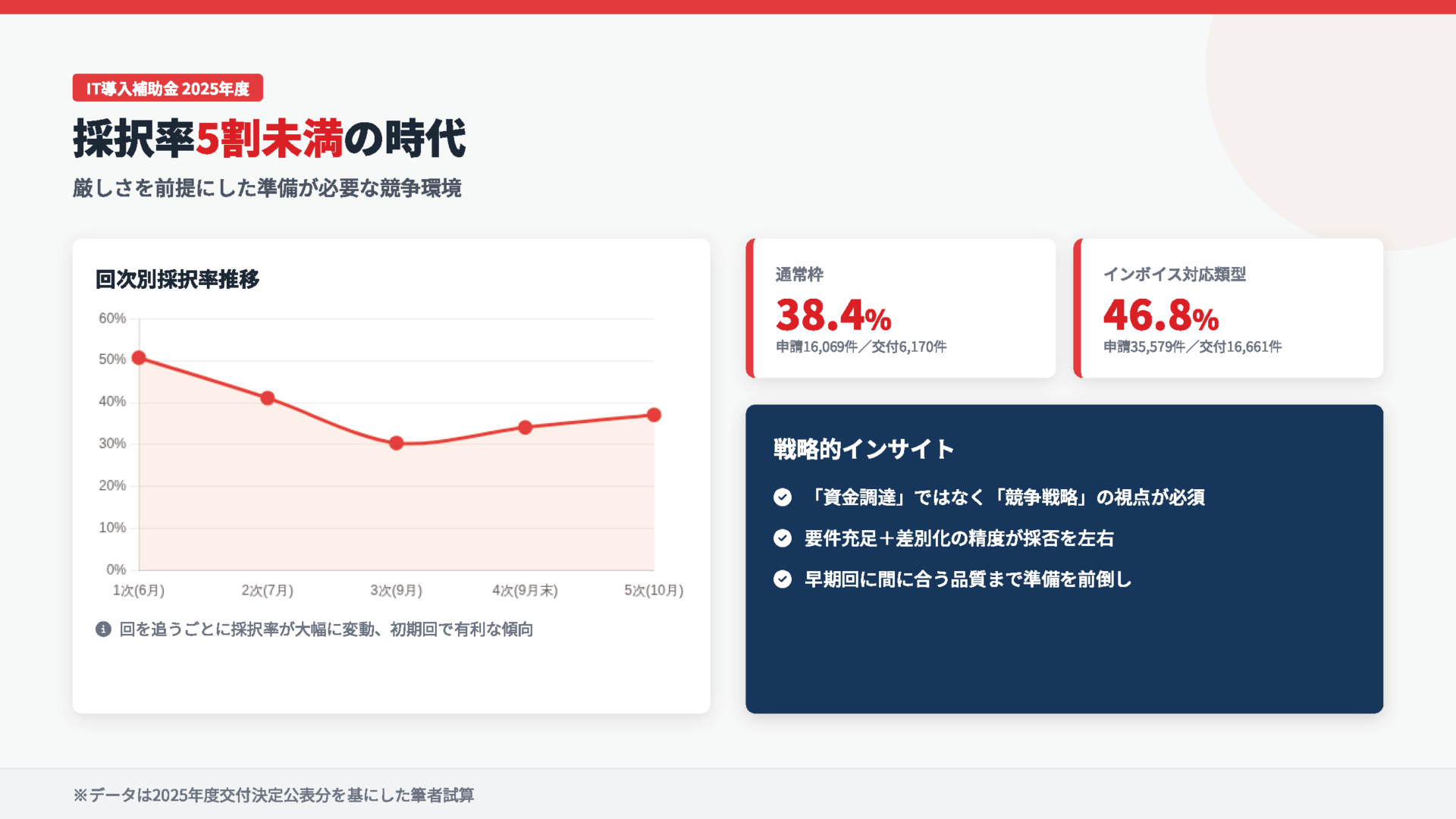 IT導入補助金2025、採択率の現実は?公式データから見えた5つの意外な事実