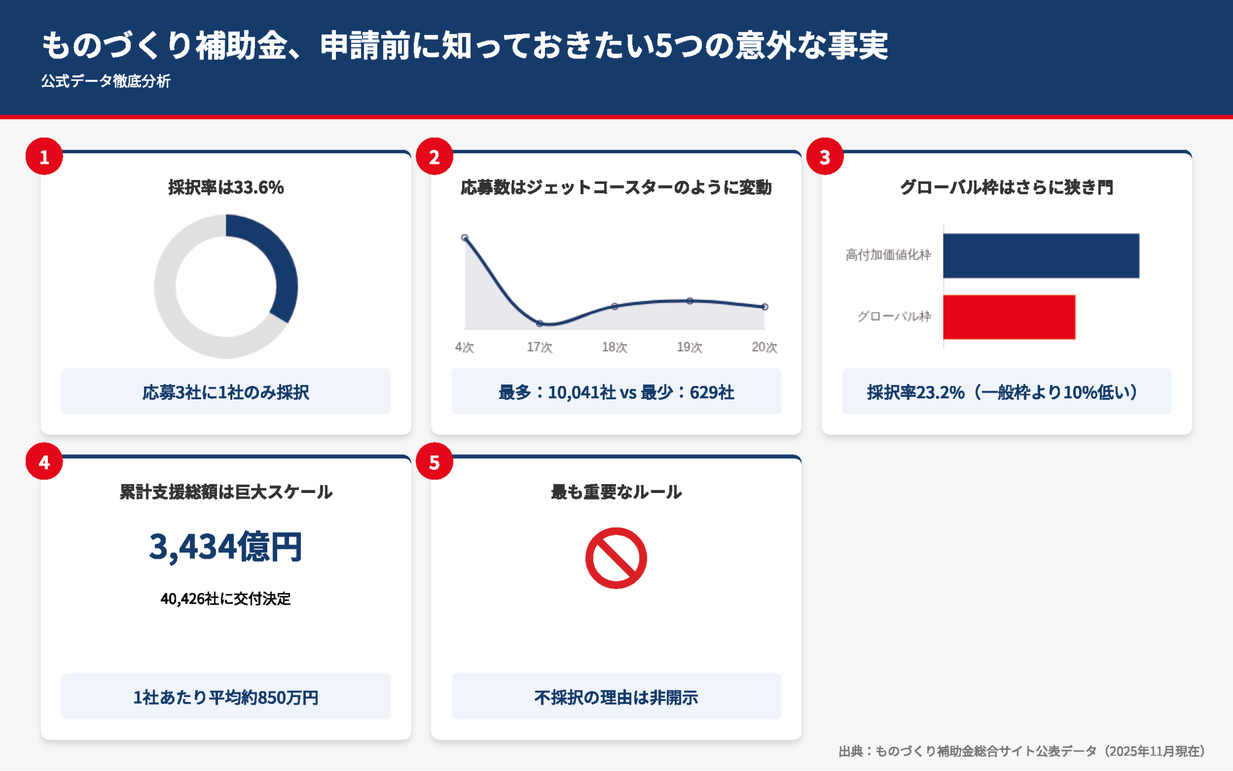 ものづくり補助金、申請を考える前に知っておきたい5つの意外な事実【公式データ徹底分析】
